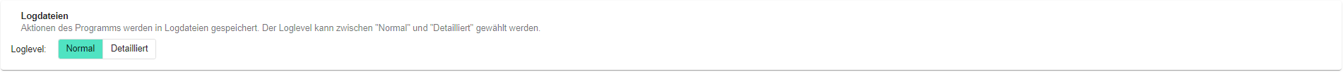 Die aktuelle Einstellung wird im Fenster aktueller Loglevel angezeigt.