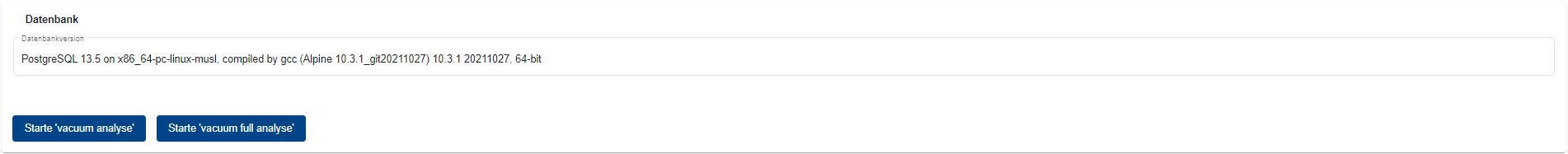 Außerdem kann per Klick auf Starte “Vacuum analyse” oder Starte “Vacuum full analyse” eine Vacuum Analyse angestoßen werden.