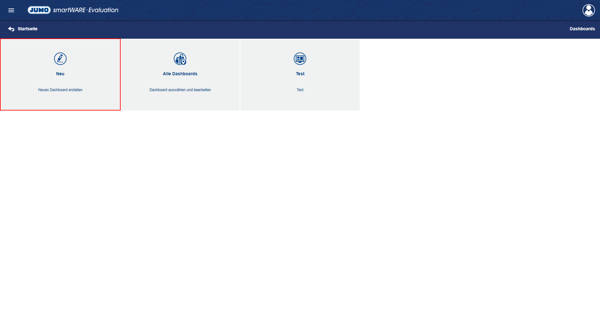 Um ein neues Dashboard zu erstellen klicken Sie auf die Schaltfläche “Neu”