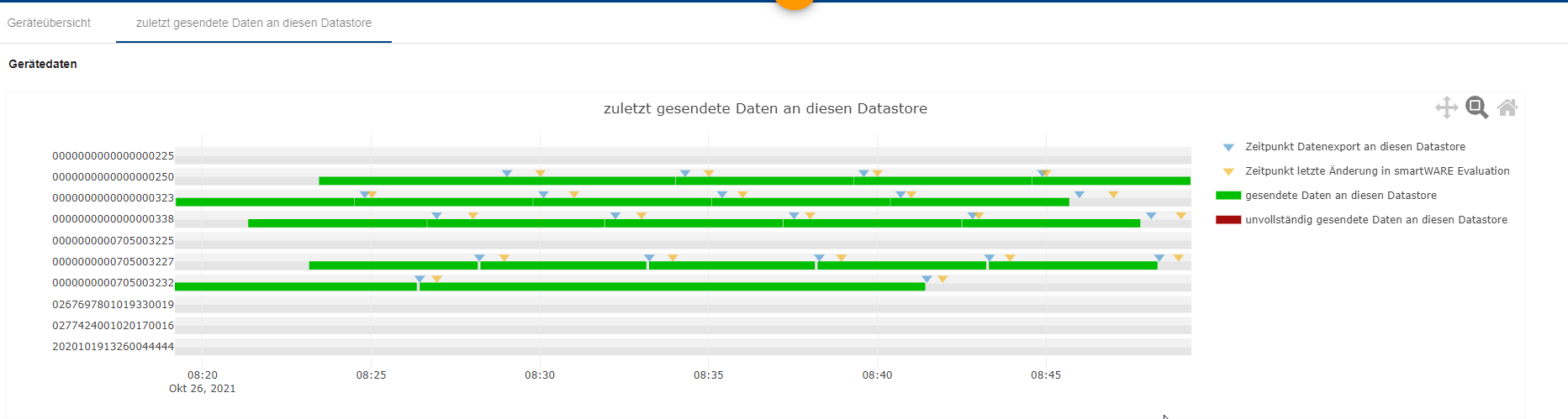 Evaluation / Datastore/ Geräte / Tabsheet "zuletzt gesendete Daten an diesen Datastore"