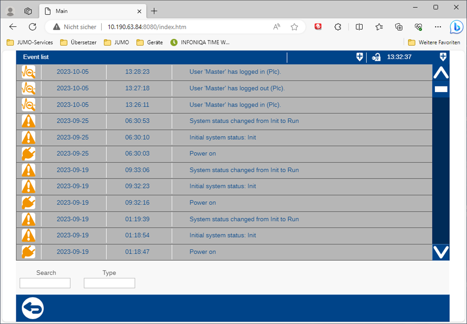 In diesem Untermenü werden Ereignismeldungen des Geräts chronologisch in einer Liste dargestellt.