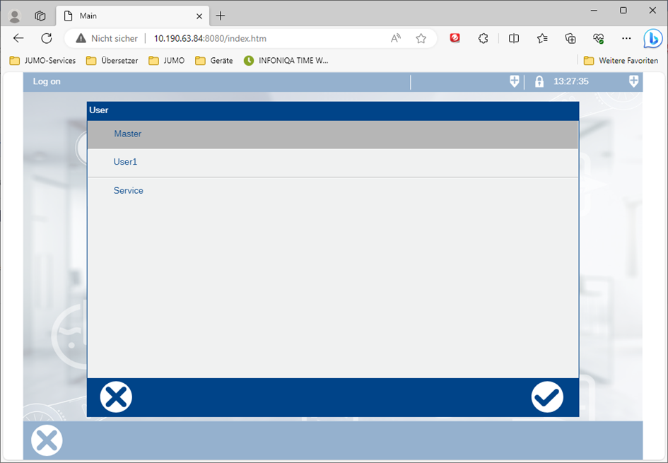 In diesem Untermenü kann der Benutzer aus der Benutzerliste ausgewählt und das Passwort des betreffenden Benutzers eingegeben werden.