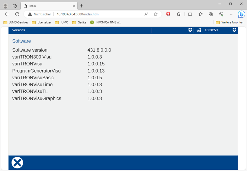 … werden die Versionsnummern der einzelnen Software-Komponenten angezeigt.