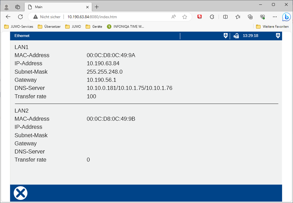 Das Untermenü Ethernet enthält Informationen (IP_Adresse u. a.) zur Ethernet-Schnittstelle LAN1 und gegebenenfalls weiteren Ethernet-Schnittstellen.