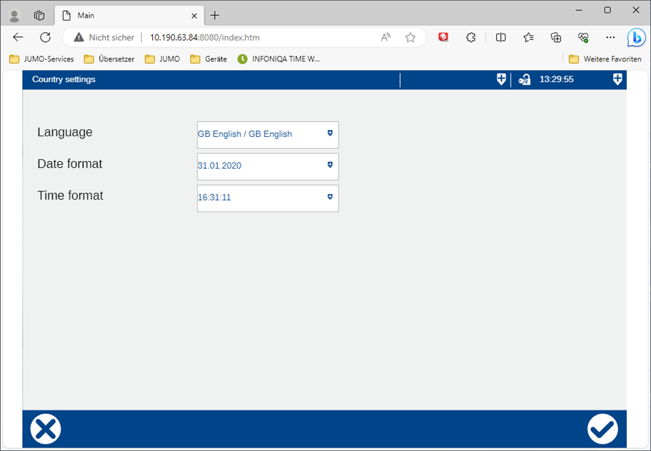 … werden die Sprache der Texte ausgewählt und die Formate für Datum und Uhrzeit eingestellt.