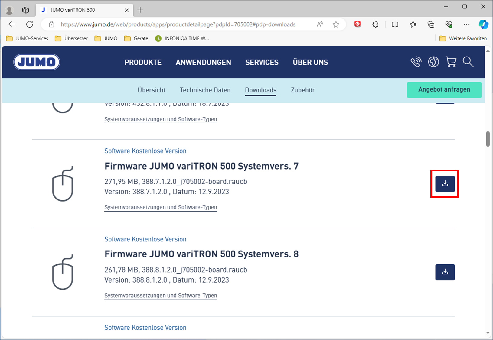Für die JUMO variTRON-Geräte werden die aktuellsten Firmwareversion auf der JUMO-Homepage zum Herunterladen zur Verfügung gestellt.