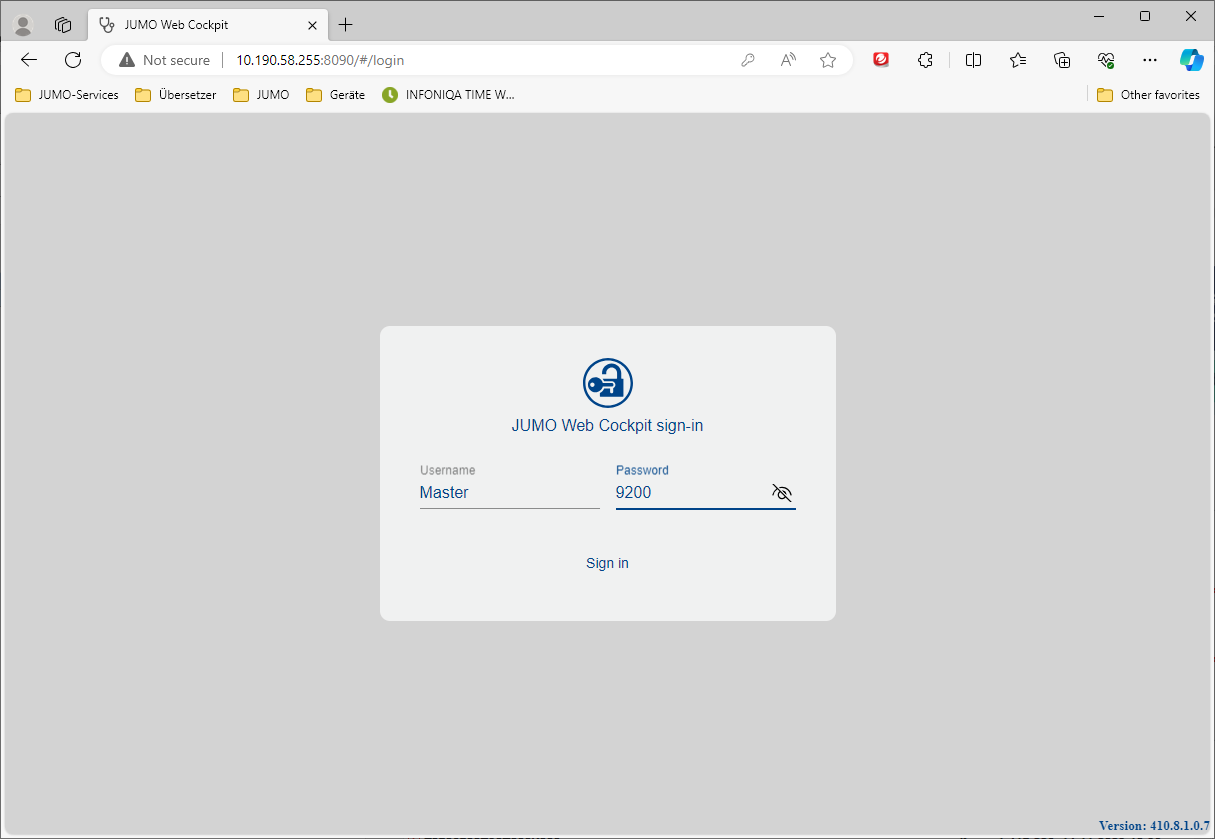 Wird das WebCockpit erstmalig geöffnet, ist zur Authentifizierung ein Benutzername und das zugehörige Passwort erforderlich (Bei Auslieferung des variTRON ist der Benutzername “Master” und das Passwort “9200”).