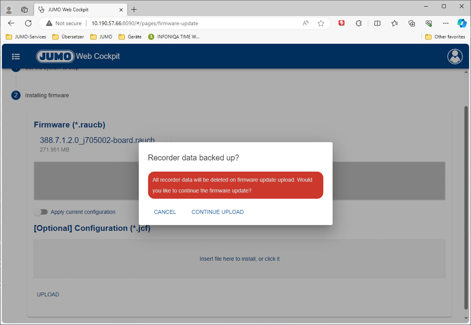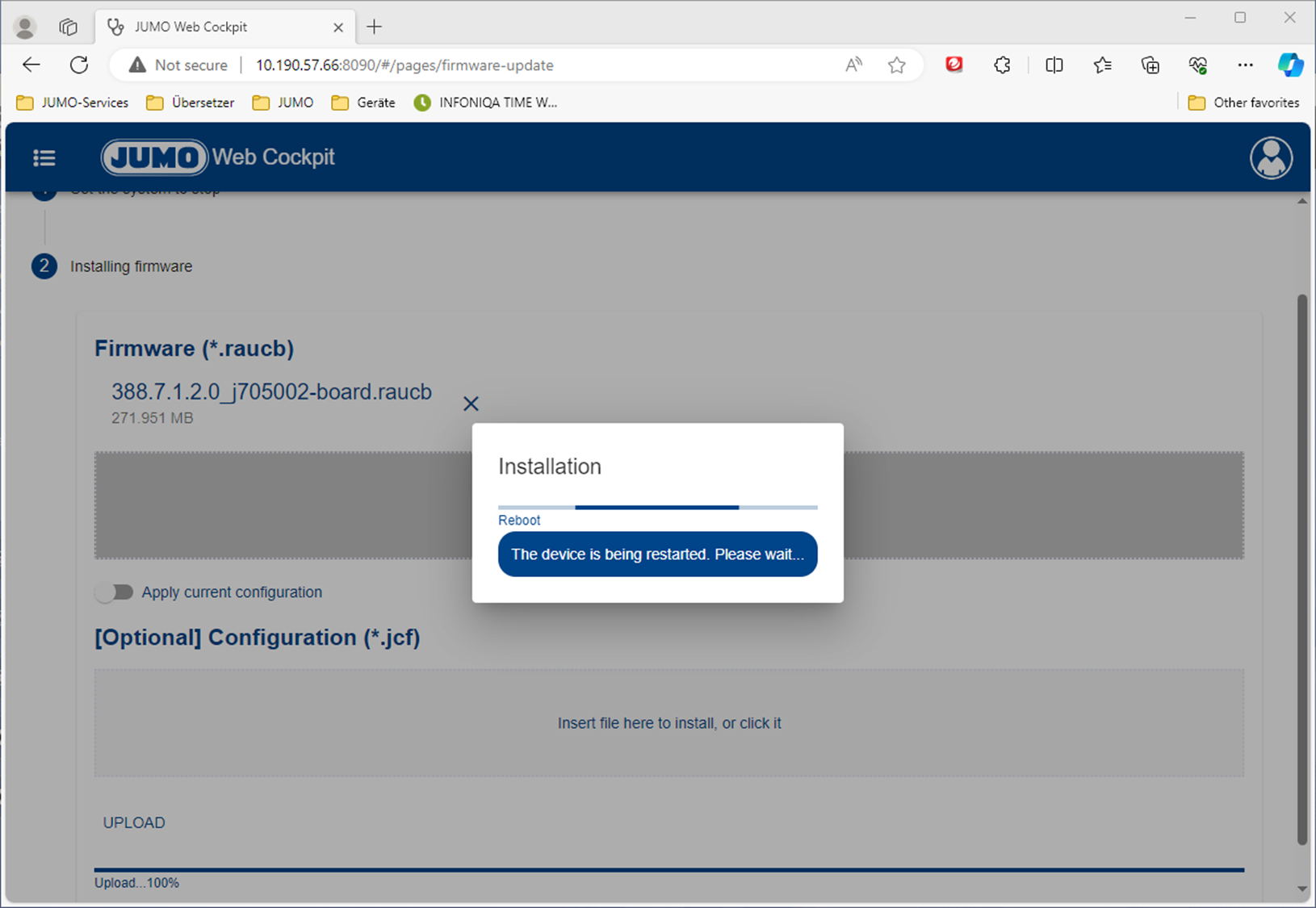 Die neue Firmware kann nur über den Web Cockpit installiert werden.