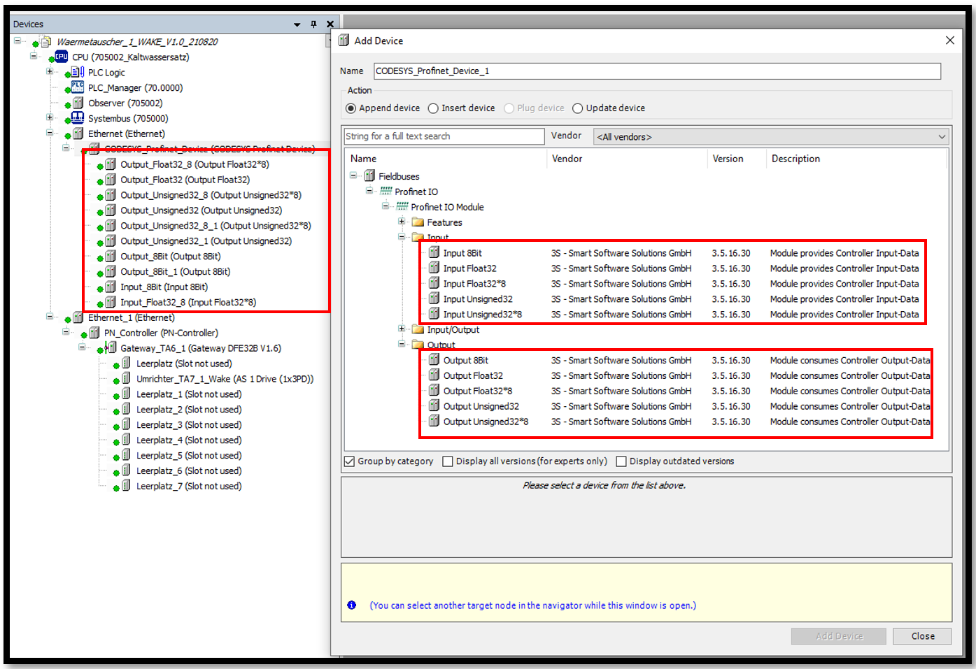 EA-Abbild mit Add Device vom PN-Device erstellen. Muss identisch zur Device-Konfiguration im PN-Controller sein.