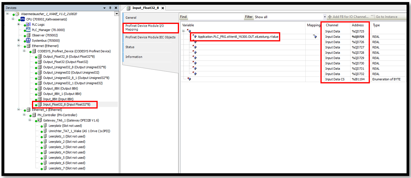 EA-Abbild mit Variablen mappen (8 Floats vom Controller empfangen)