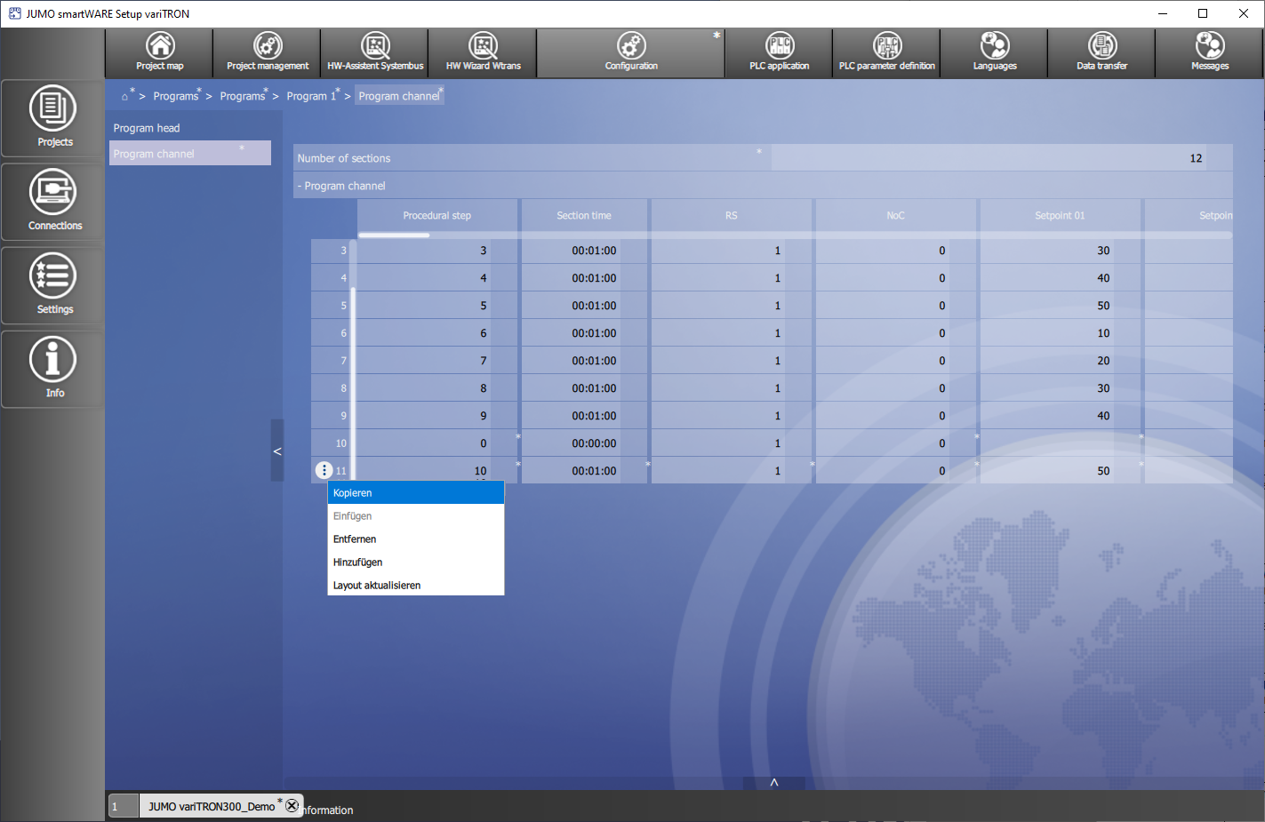 Number of sections | 0…300 | Die Anzahl bestimmt, wie viele Abschnitte im Programm abgearbeitet werden. |