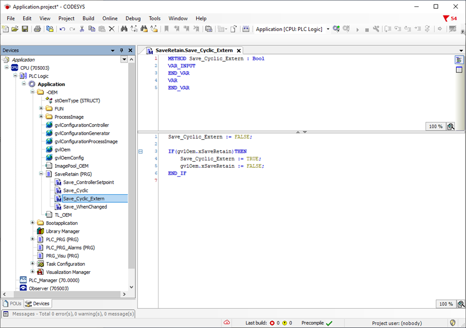 Ein Benutzerinitiiertes Speichern der Retaindaten kann über ein Setzen der Variable gvlOem.xSaveRetain ausgelöst werden.