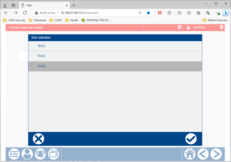 In der fertigen Anwendung wird bei Betätigung des Auswahlelementes ein Dialog geöffnet, in dem man eine Auswahl aus den übergebenen Strings treffen kann. Mit Betätigung des Übernahme-Button wird der Index auf den ausgewählten String zurückgegeben. Mit Betätigung des Abbruch-Button wird der Dialog ohne Veränderung des Index geschlossen.