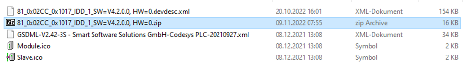 Aus der Zip Datei sollten folgende Dateien entpackt worden sein.