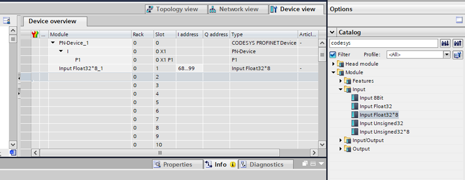 Der variTRON ist über den Hardware Katalog unter Weitere Feldgerät → Profinet IO → IO → 3s-Smart Software Solutions GmbH → CODESYS PLC → CODESYS Profinet Device auswählbar und kann in die Hardware Konfiguration eingefügt werden.
