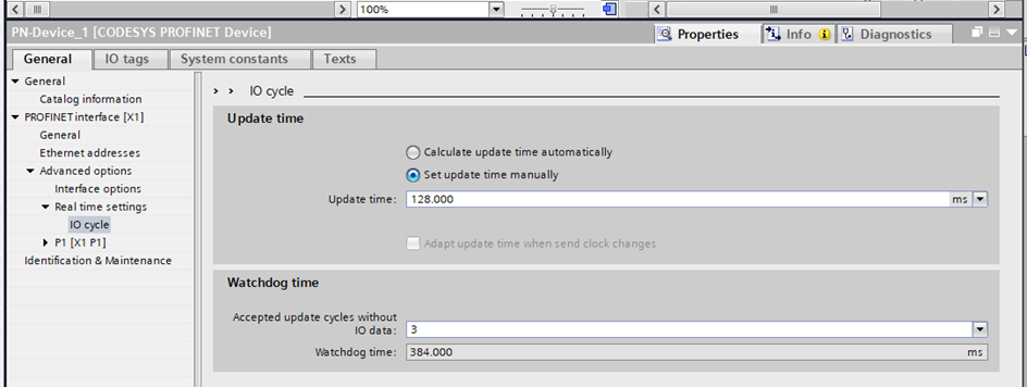 Abschließend sollte die Aktualisierungszeit für den variTRON auf 128 ms eingestellt werden.