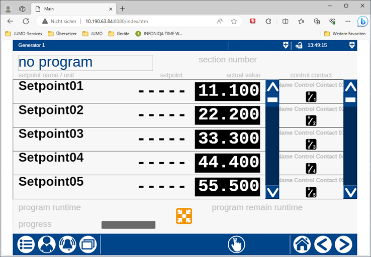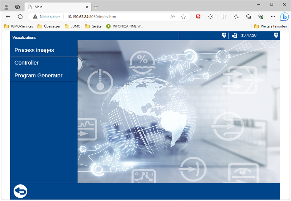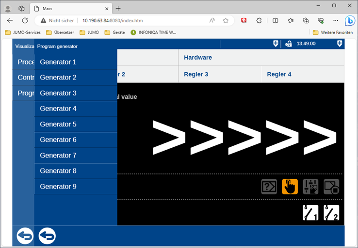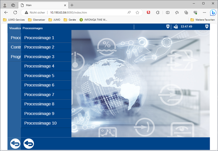 In diesem Untermenü können 10 Prozessbilder aufgerufen werden. Die Prozessbilder müssen zuvor durch den Anwender (Applikationsentwickler) erstellt werden.