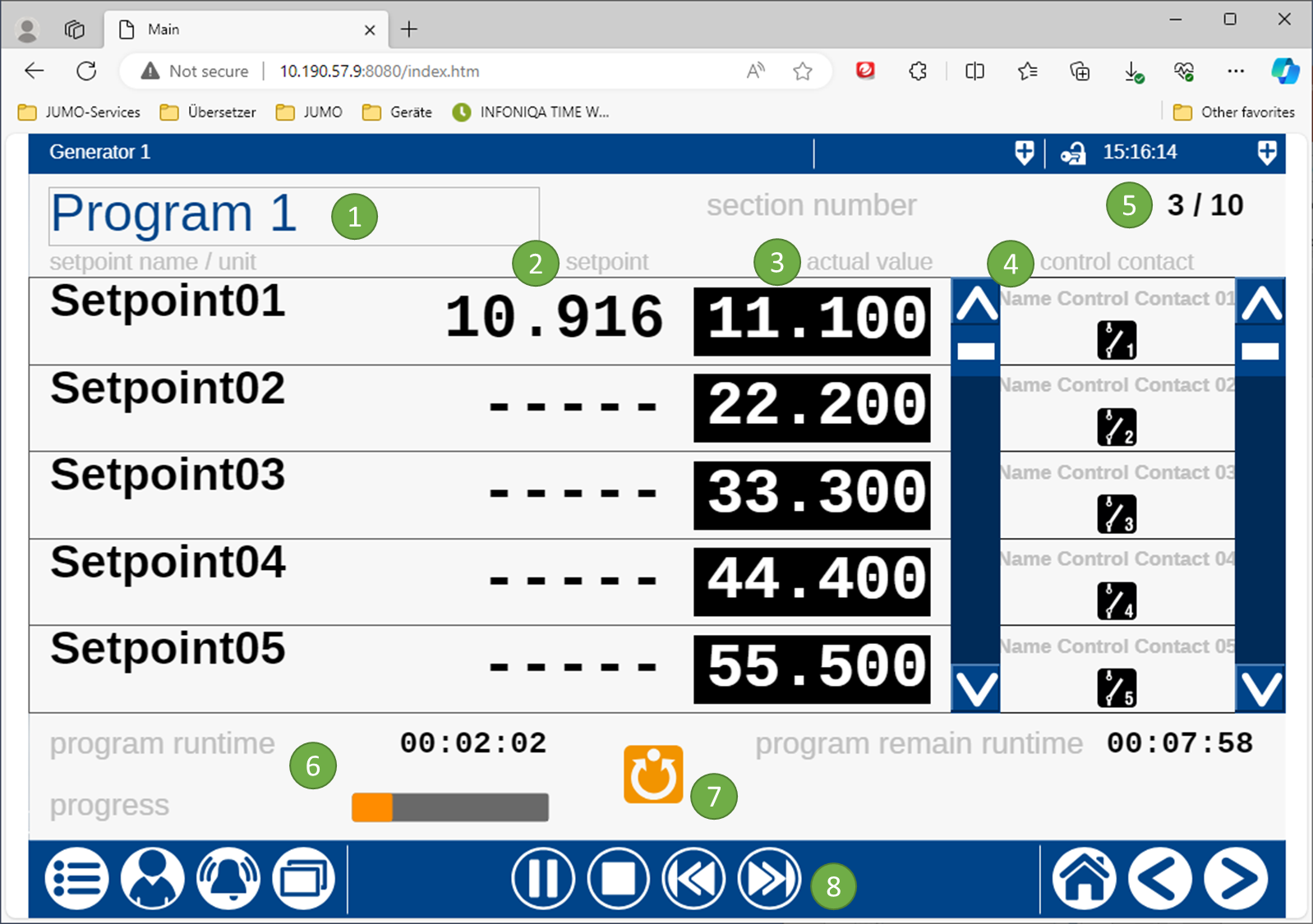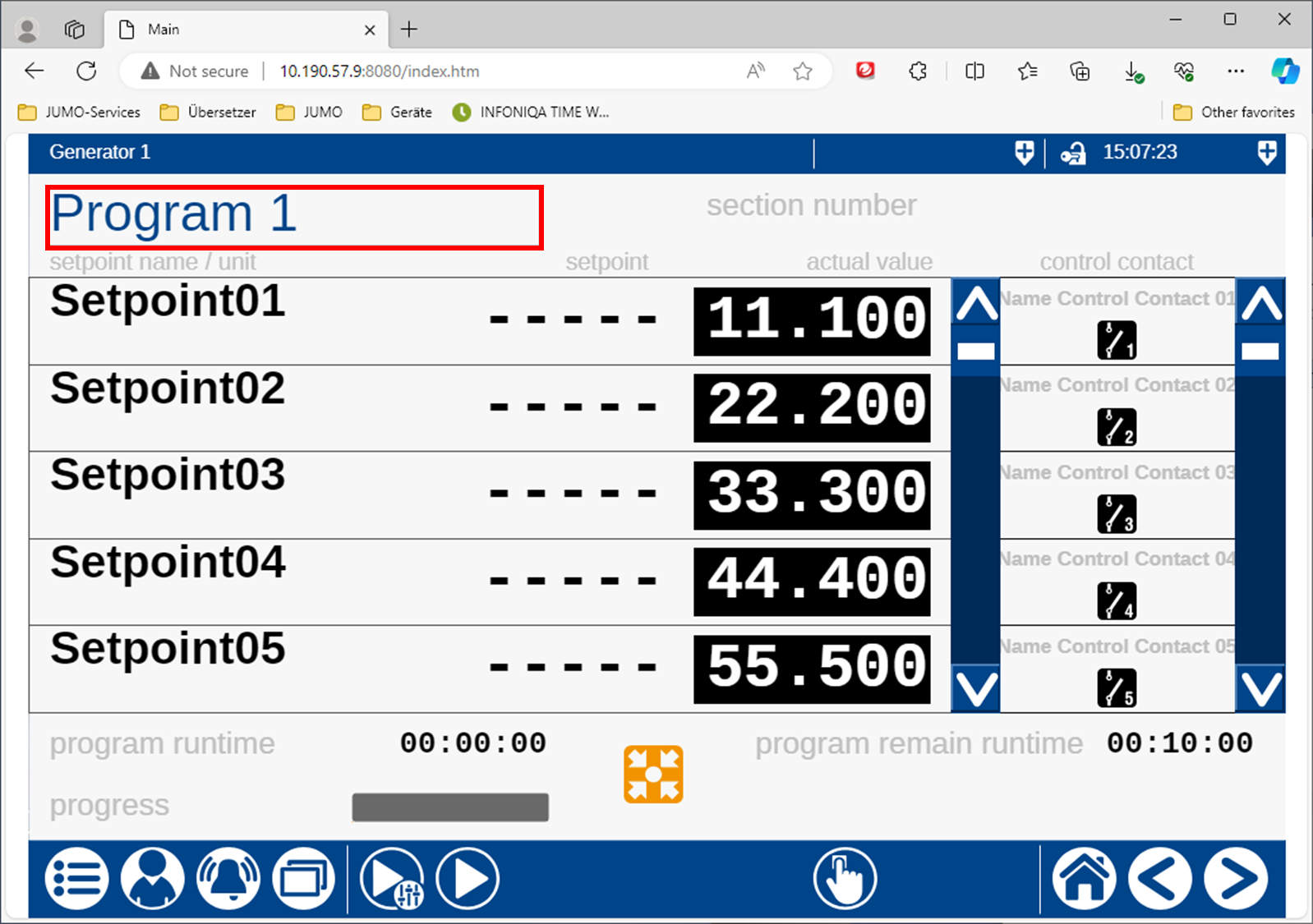 Über den Button Hand werden die Sollwerte und Steuerkontakte aus der Konfiguration übergeben.