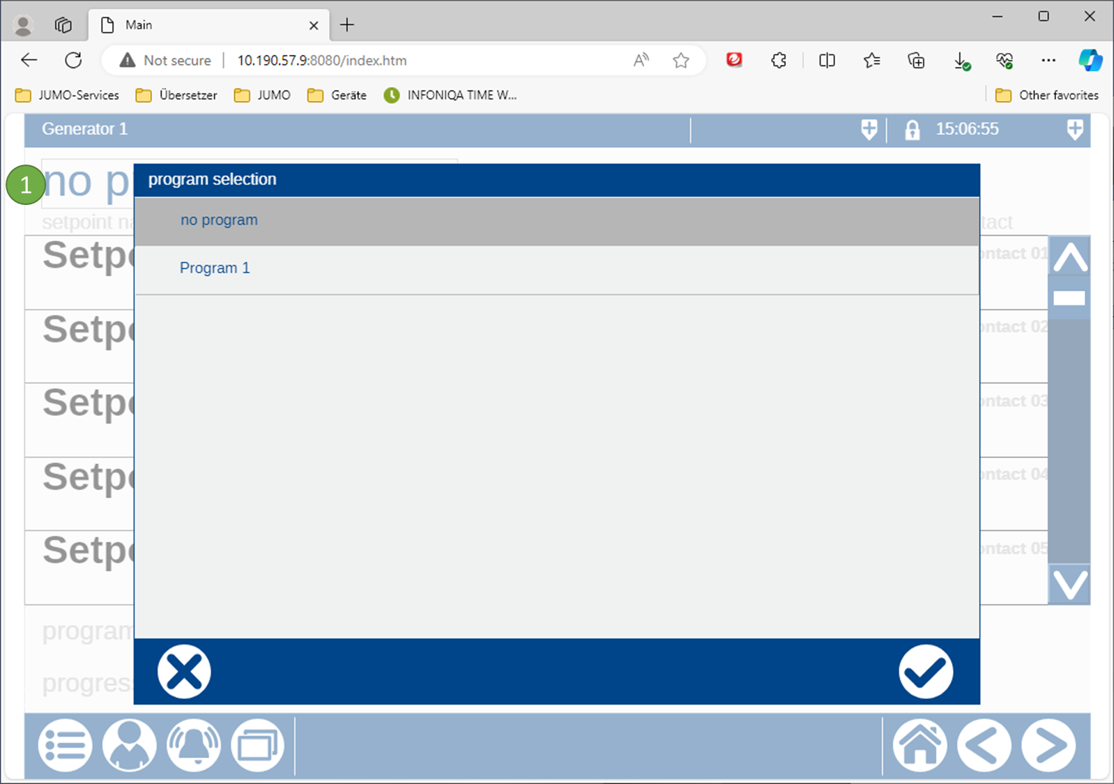Klickt man in das Feld :No1: für die Programmauswahl öffnet sich ein Fenster. Hier werden alle Programme aufgelistet, die dem Programmgeber zugewiesen wurden.