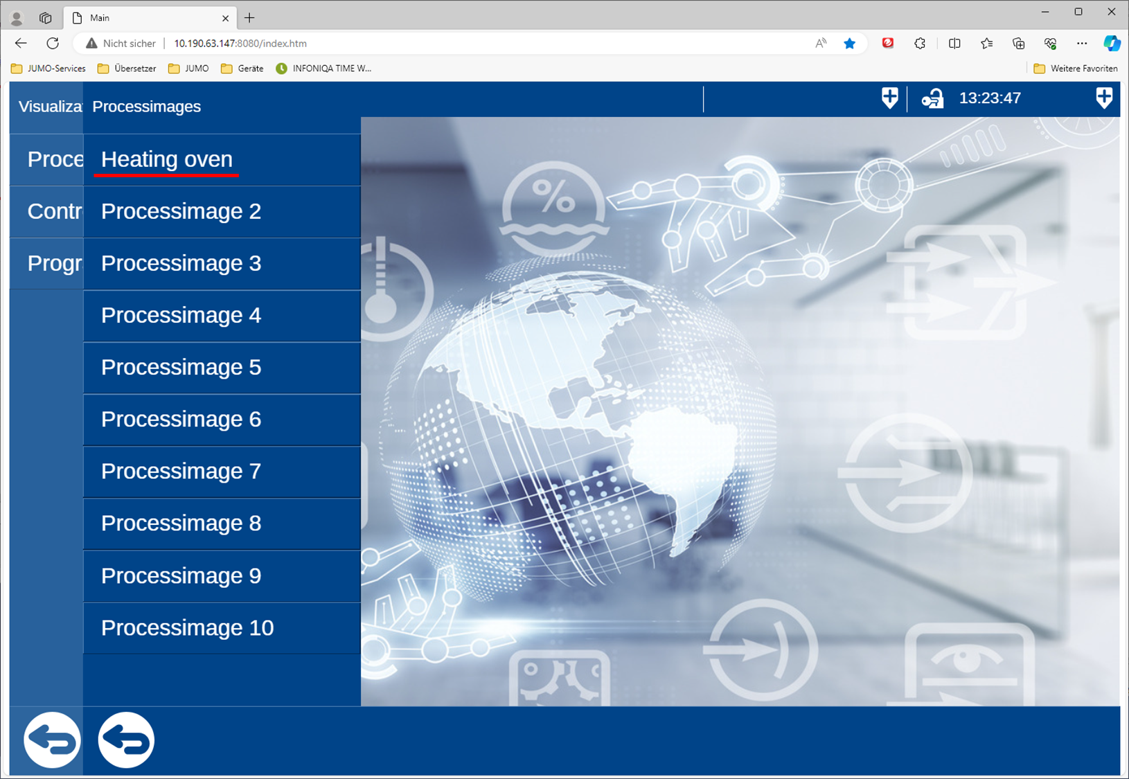 Der neue Name für das Prozessbild 1 wird nun in der ausgewählten Sprache im Menü angezeigt.