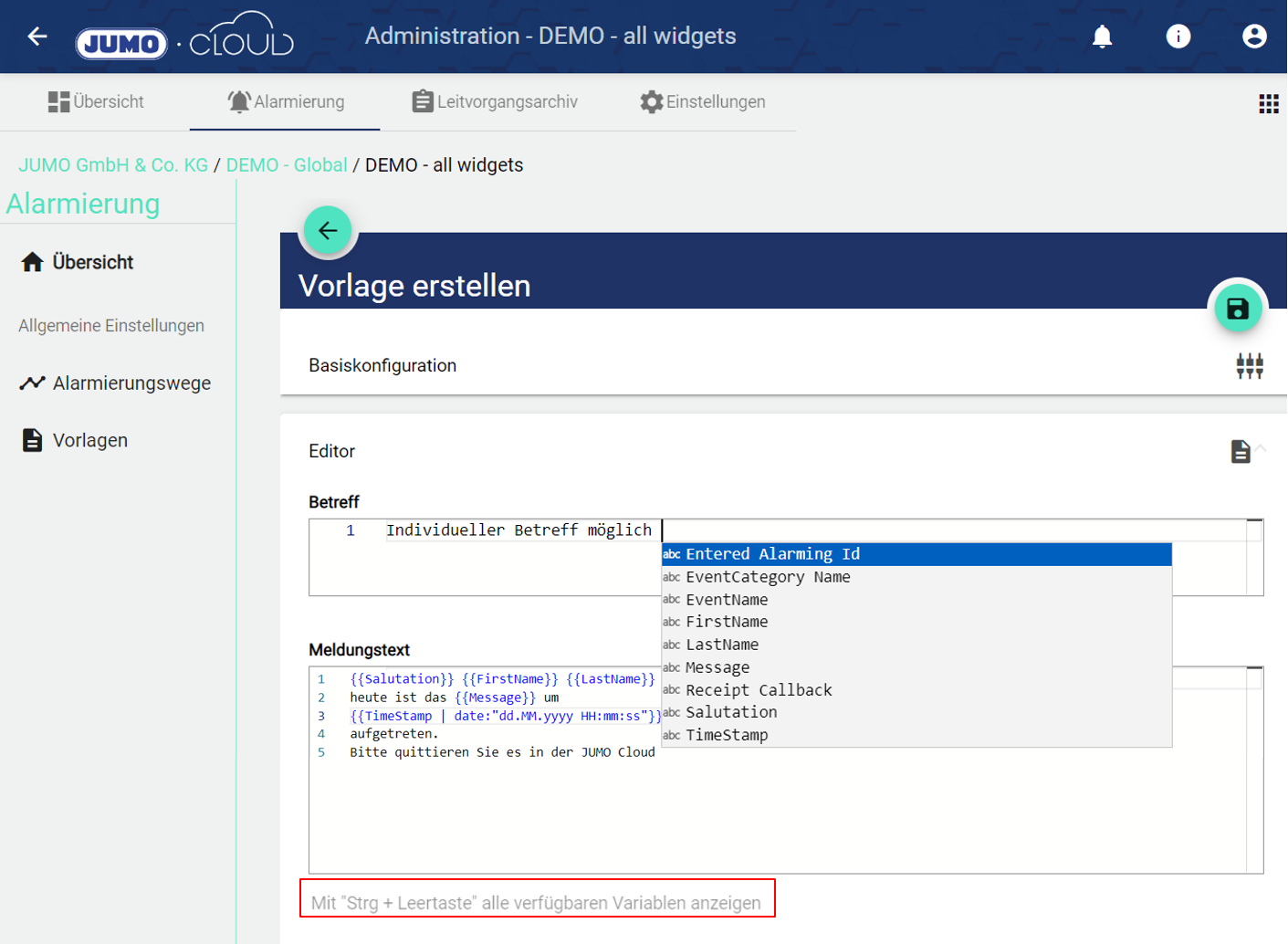 6.) Aktuell wird bei der Alarmierung per “Mail” im Default immer die Ereigniskategorie im Betreff versendet. Mit dem neuen Feature lässt sich der Betreff individuell durch die Verwendung von Mail-Vorlagen anpassen. Es können alle üblichen Variablen verwendet werden, u. a. auch das auslösende Ereignis.