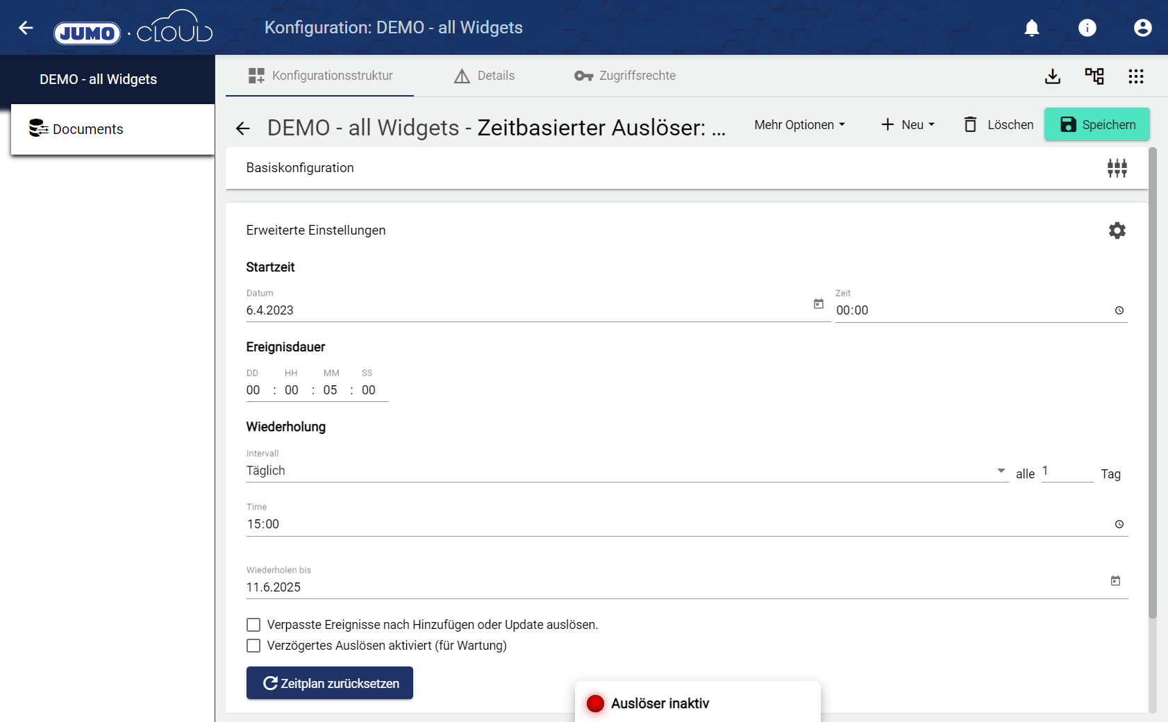 10.) In der Konfiguration des zeitbasierten Auslösers lässt sich der Aktivitätsstatus (Ereignis aktiv bzw. inaktiv) nun schnell und einfach erkennen.
