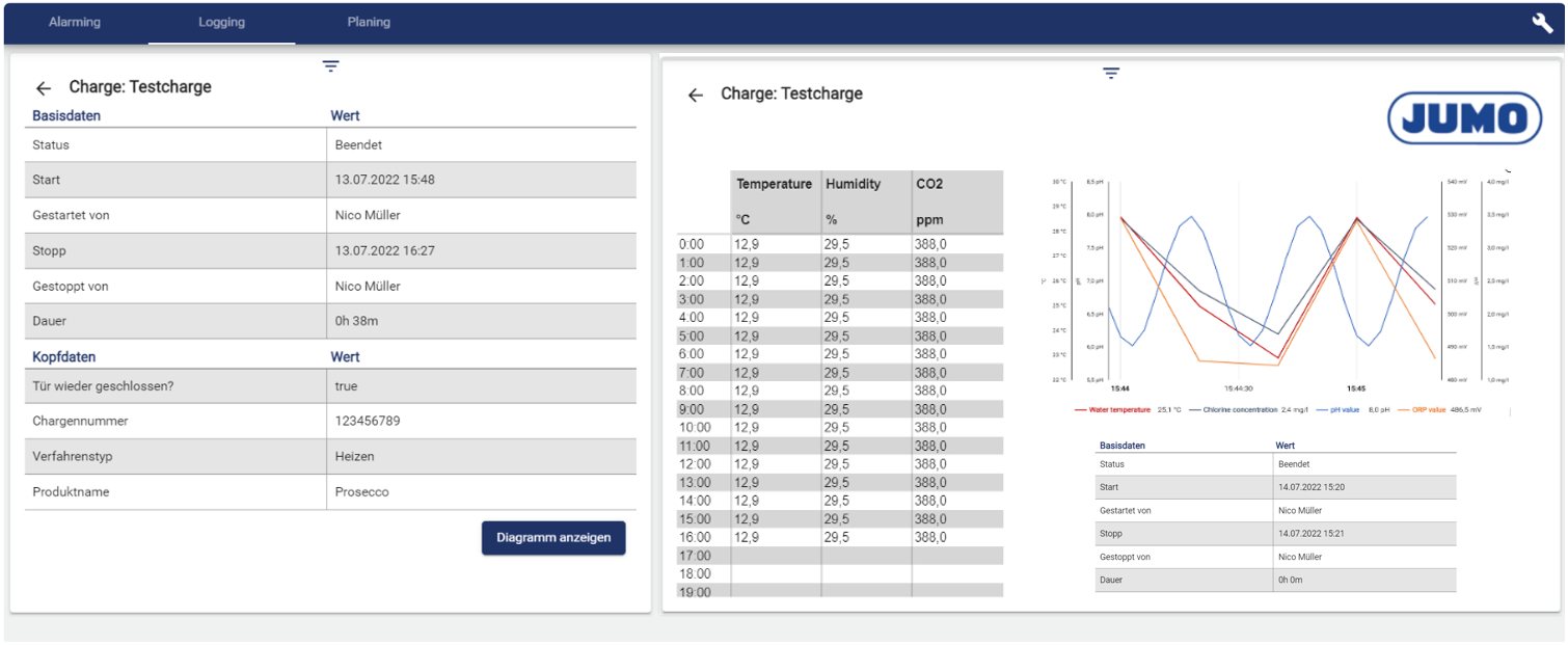 Neues Widget: Chargenarchiv → Abgeschlossene Chargen filtern, individuelle Reports, Signalverläufe und Kopfdaten einsehen.