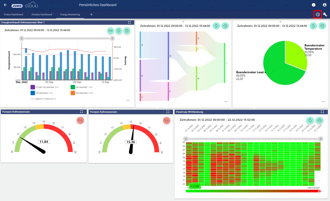 1.) Nachfolgende Widgets wurden optisch angepasst und verbessert. Ebenso ist eine einheitliche Zeitsteuerung implementiert worden. Möchte der Anwender nun beispielsweise ein Zeitintervall des vergangenen Monats einsehen, so kann er diese Einstellung an einer zentralen Stelle tätigen. Die gewünschten Widgets zeigen anschließend alle das ausgewählte Zeitintervall an.