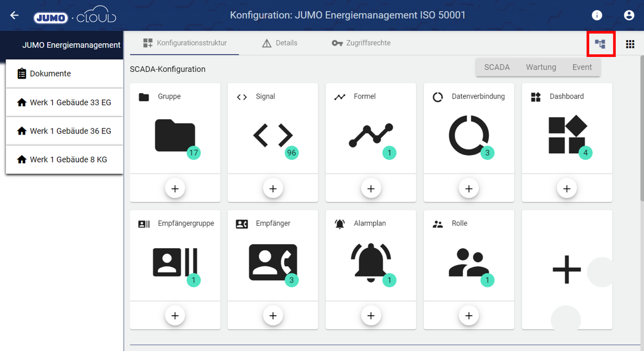 3.) In der Konfigurationsstruktur gibt es ab jetzt die Möglichkeit, sich alle Konfigurationselemente aus sämtlichen Untergruppen innerhalb einer Gruppe anzeigen zu lassen. Für Mandanten mit mehreren Gruppen bietet dieses Feature eine große Zeitersparnis, da aufwändiges Suchen entfällt. Die Einstellung ist oben rechts in der Konfiguration zu finden und wird je Benutzerkonto und Mandant individuell gespeichert.