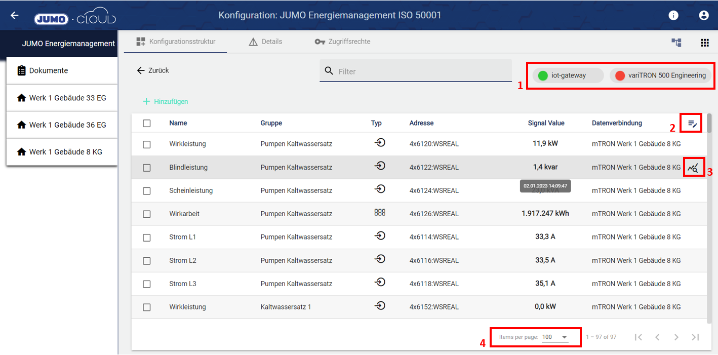 Innerhalb der Signal-Konfiguration werden alle zugehörigen Datenquellen angezeigt. Durch ein Hovern über die Datenquelle kann die Konfiguration nun deutlich einfacher gesendet werden. Zudem wird der Status (rot, grün) angezeigt und die Datenquelle kann schneller aktiviert und deaktiviert werden.
