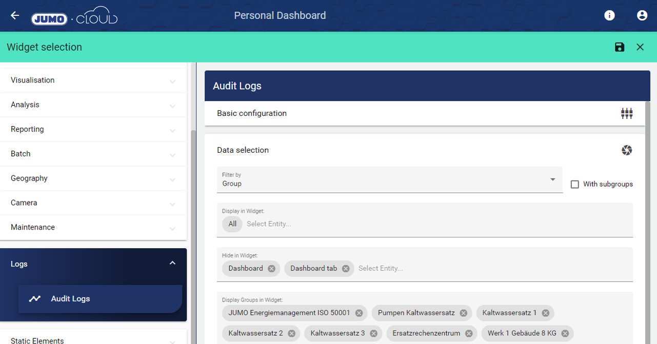 7.) Das Widget: Audit Logs wurde deutlich verbessert. Ab sofort lassen sich alle Änderungen, die auch im Leitvorgangsarchiv angezeigt werden, im Widget darstellen. Zusätzlich gibt es die Möglichkeit, unterschiedliche Konfigurationselemente und Gruppen von der Ansicht auszuschließen.