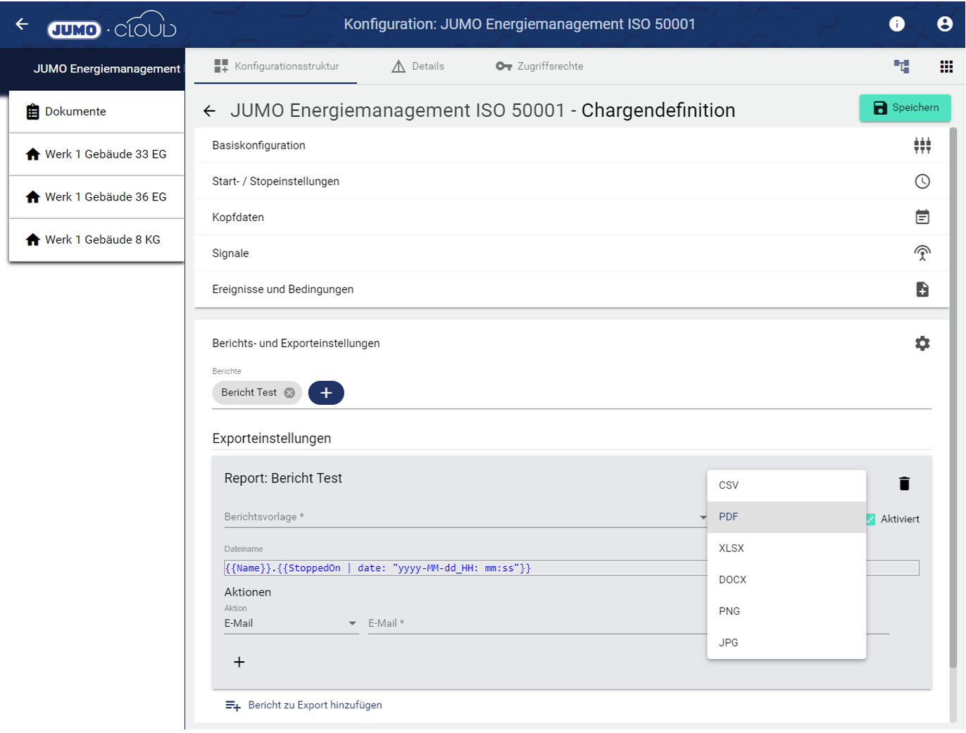 Der Dateiname kann durch individuelle Chargendaten wie Chargendauer, Chargennummer, etc. ergänzt werden.