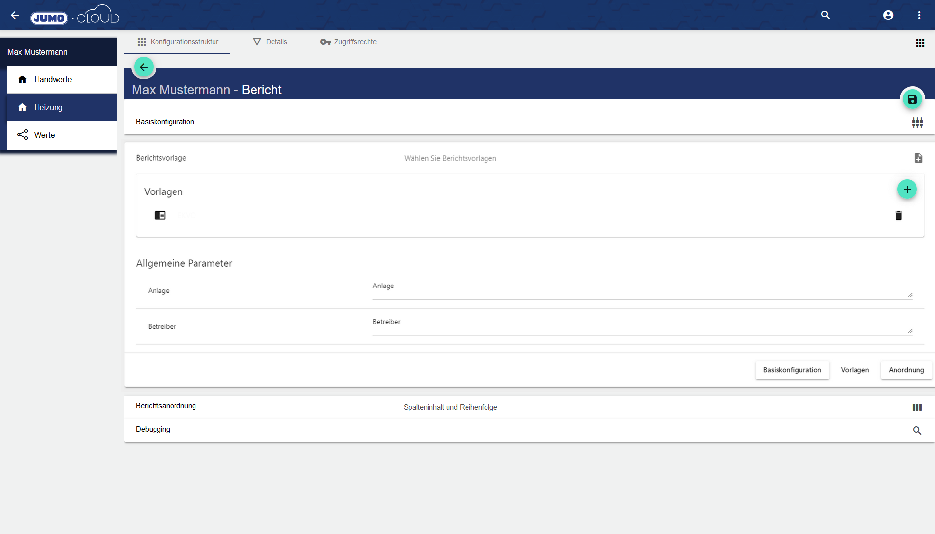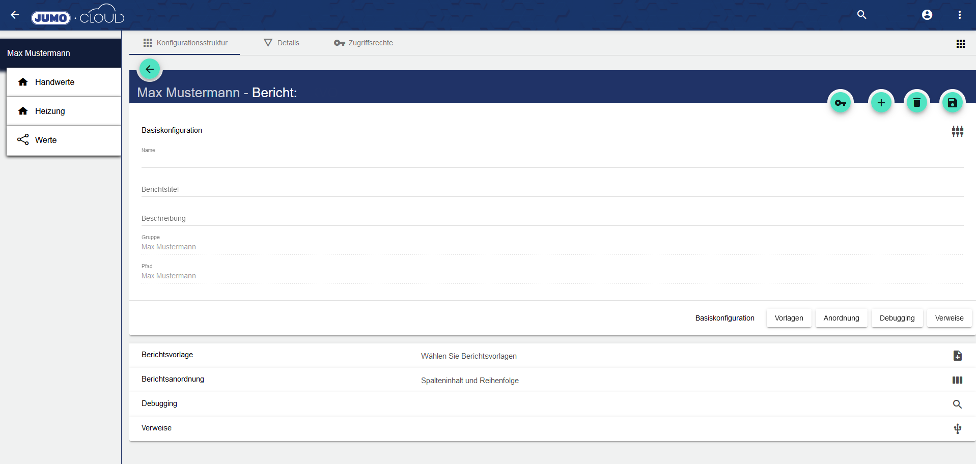 Über die Auswahl der Schaltfläche “Bericht” kann ein bereits angelegter Bericht bearbeitet werden. Über das Plus wird ein neuer Bericht angelegt.