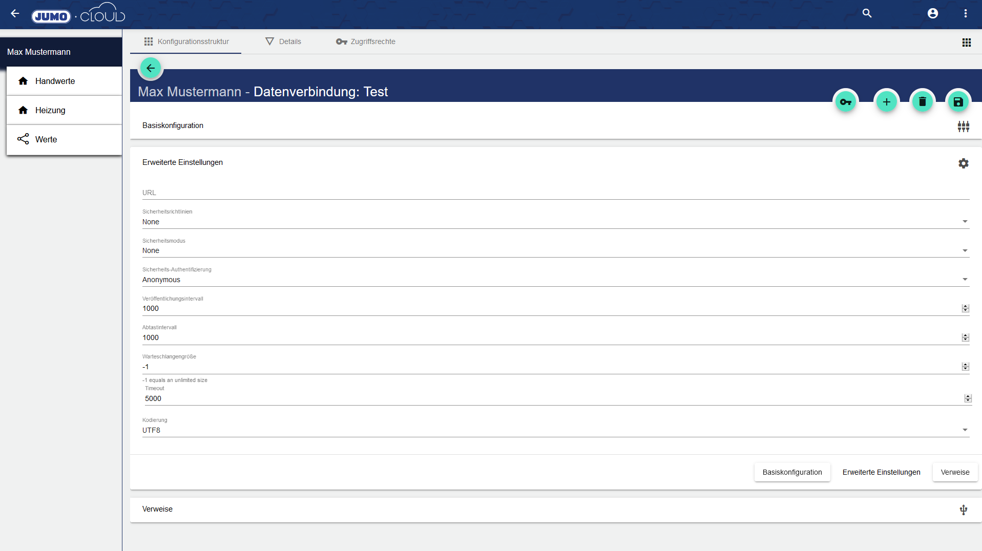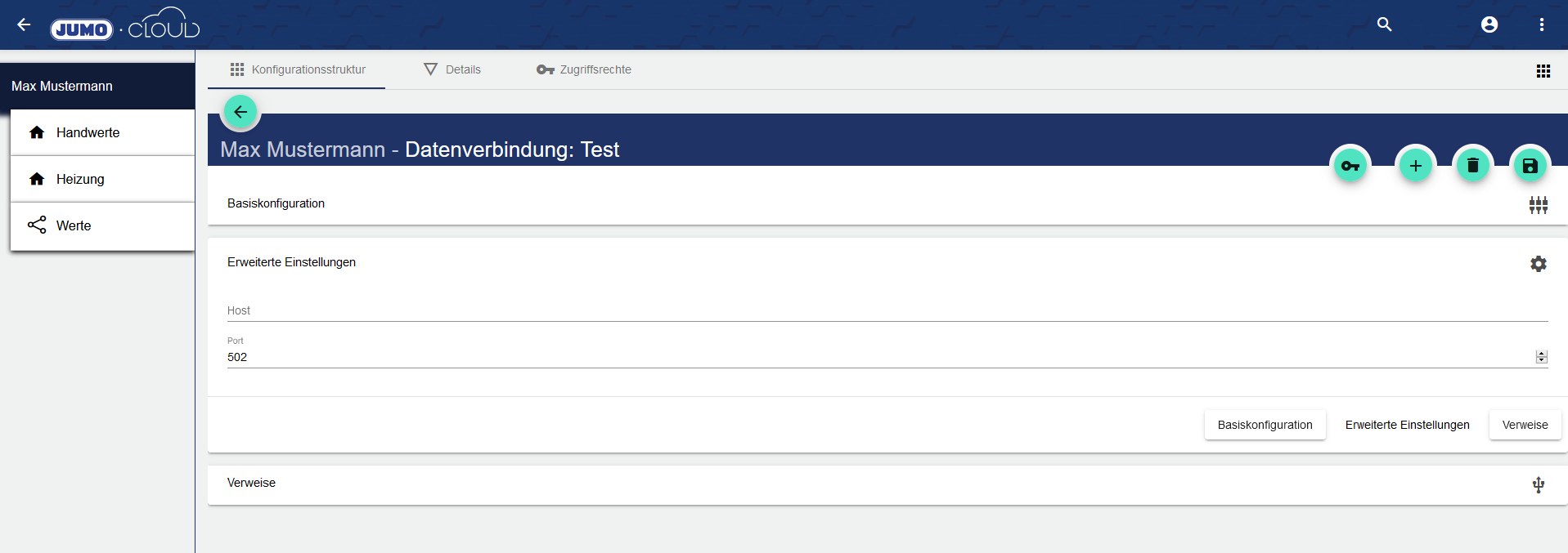 Typ auswählen (nur die oben aufgeführten Datenverbindungen sind in der JUMO Cloud relevant)