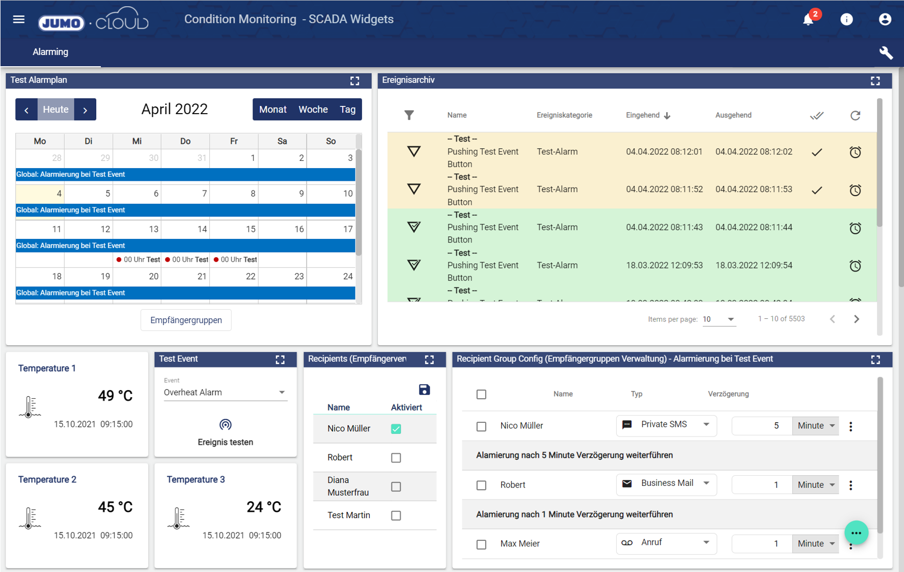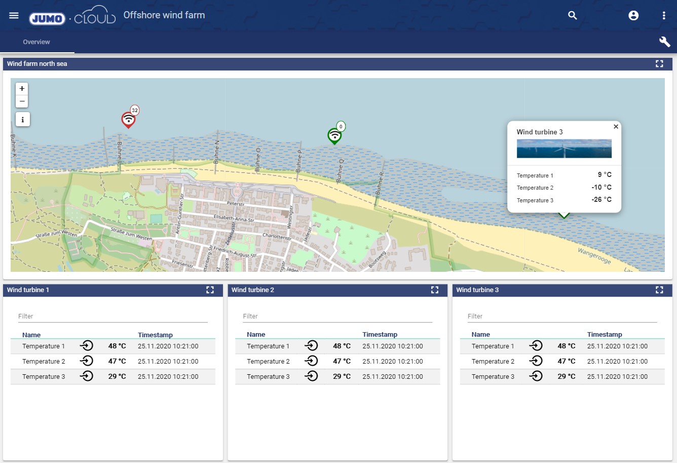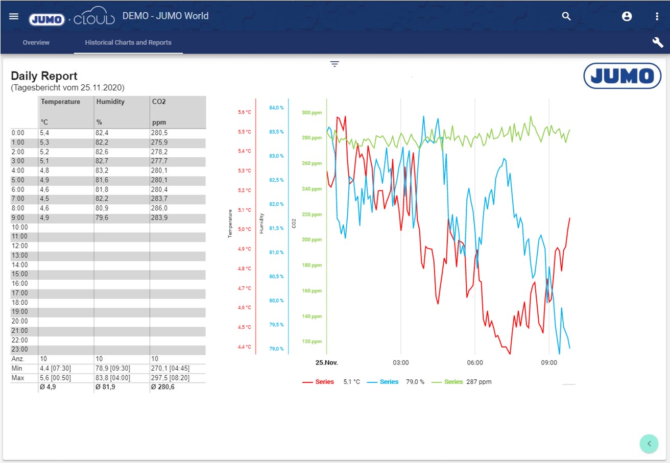 Die IoT-Plattform zur Prozessvisualisierung, Datenerfassung, -auswertung und -archivierung ermöglicht weltweiten Zugriff auf Messdaten über die gängigen Webbrowser. Die JUMO Cloud zeichnet sich durch hohe Sicherheit sowie wertvolle Visualisierungs-, Alarm- und Planungsfunktionen aus.