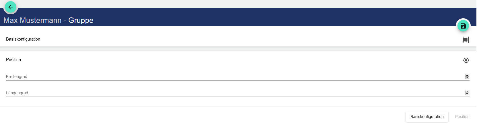 Breiten- und Längengrad können unter Position eingetragen werden. Damit kann die Gruppe im Widget: Landkarte dargestellt werden.