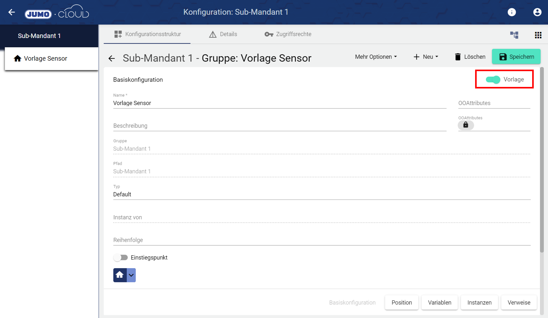 Ist eine Gruppe als Vorlage angelegt, sind alle untern Konfigurationselemente und Gruppen auch Vorlagen.