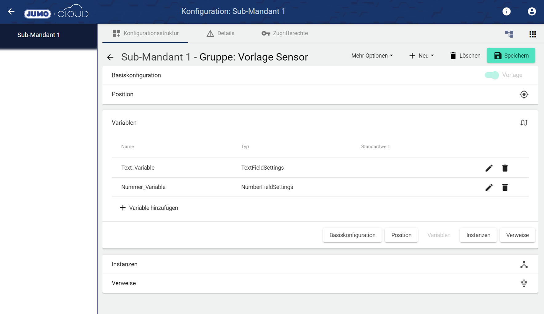 Innerhalb der Instanz-Gruppe können unter “Details” die angelegten Variablen beschrieben werden. Anschließend wird der Wert in jedem Feld, in dem diese verwendet wurde {Text_Variable}, eingetragen.