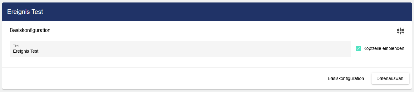 Zunächst befinden Sie sich innerhalb des Reiters Basiskonfiguration. Hier vergeben Sie Ihrem Ereignis Test einen geeigneten Titel.