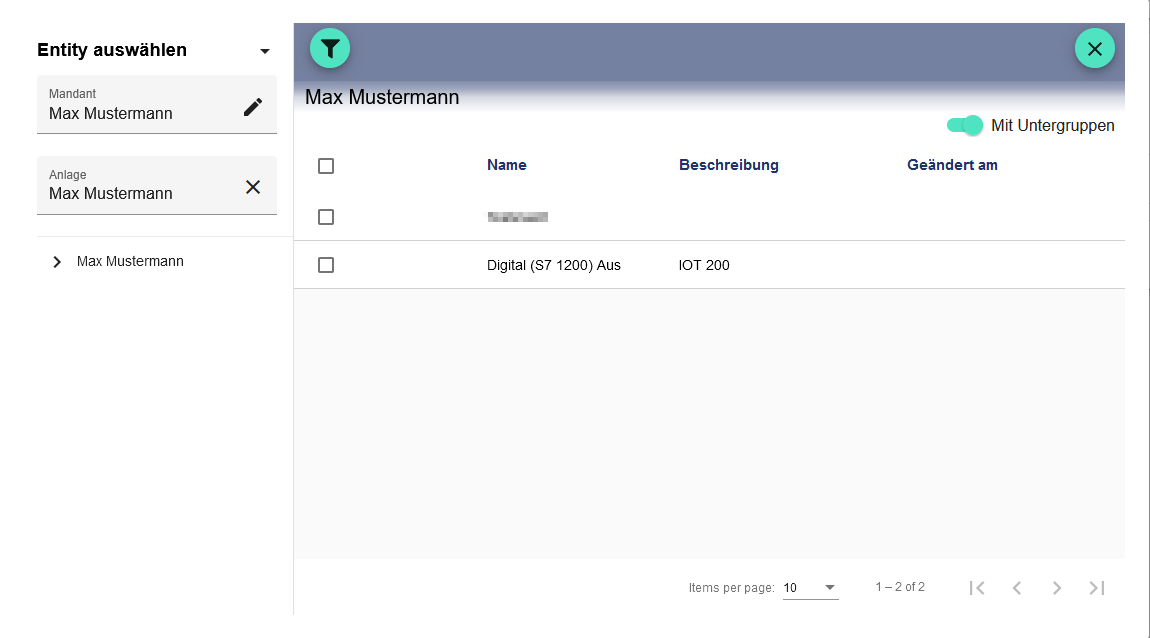 Über das Plus wird das Entity-Select Fenster geöffnet. Ein zuvor angelegtes Ereignis kann hinzugefügt werden.