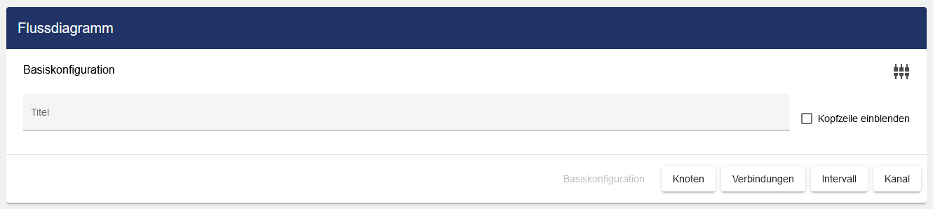 Zunächst befinden Sie sich in der Basiskonfiguration. Hier vergeben Sie Ihrem Flussdiagramm einen geeigneten Titel, welcher sinnvoll vergeben werden sollte, um ein späteres Wiederfinden/Identifizieren des Flussdiagramms zu erleichtern. Durch die Auswahl des Hakens kann die Kopfzeile eingeblendet werden.