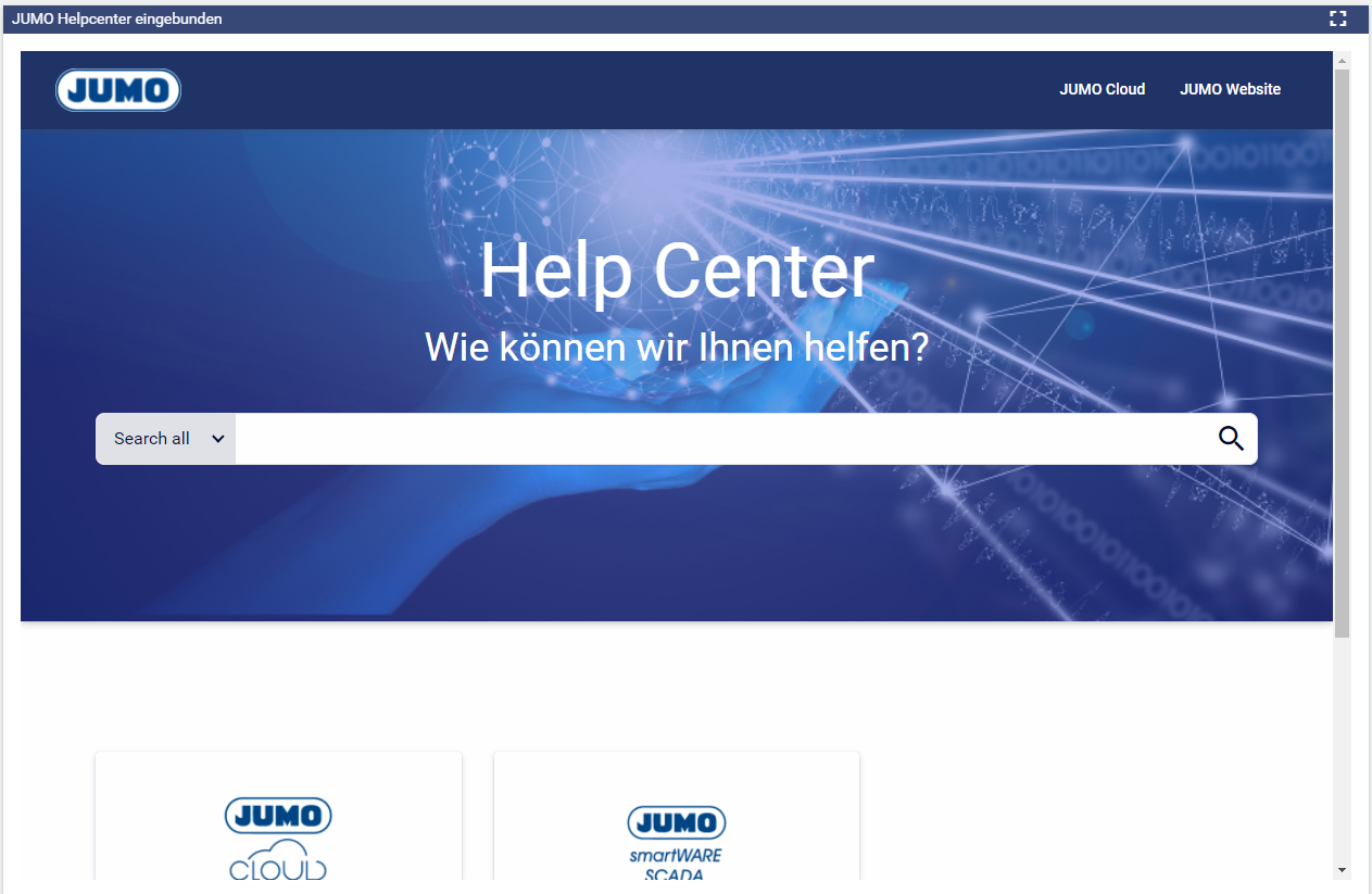 Mit diesem Widget ist es möglich externe Websiten über die URL-Adresse innerhalb der JUMO Cloud einzubinden. Die Website kann anschließend innerhalb des Widgets interaktiv genutzt werden.