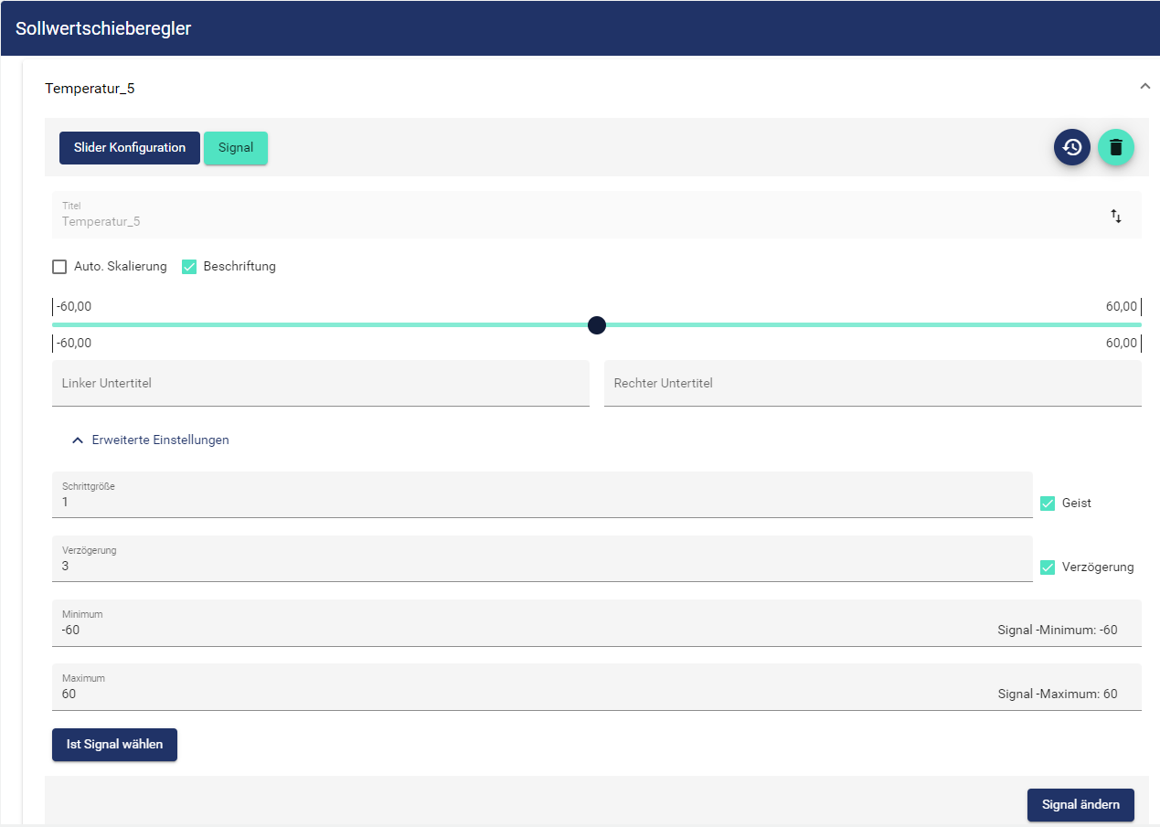 Wählen Sie das Widget Sollwertschieberegler aus der Kategorie Signale aus.
