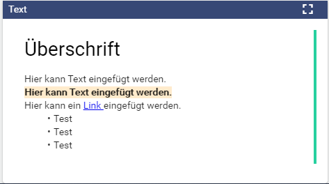 Innerhalb des Widget Text können Sie Texte mit Überschriften und Links in verschiedenen Schreibweisen einfügen.