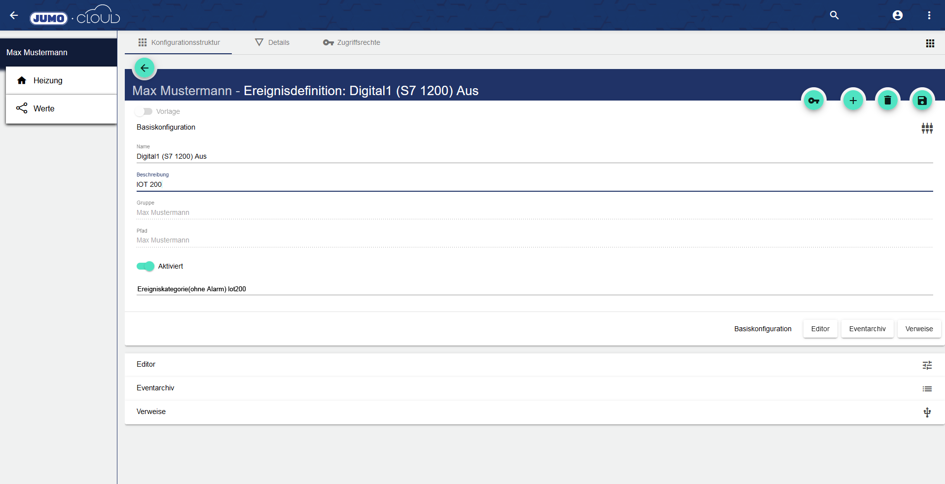 In der Basiskonfiguration legen Sie Name und Beschreibung an und wählen über den Navigator die zuvor angelegte Ereigniskategorieaus.