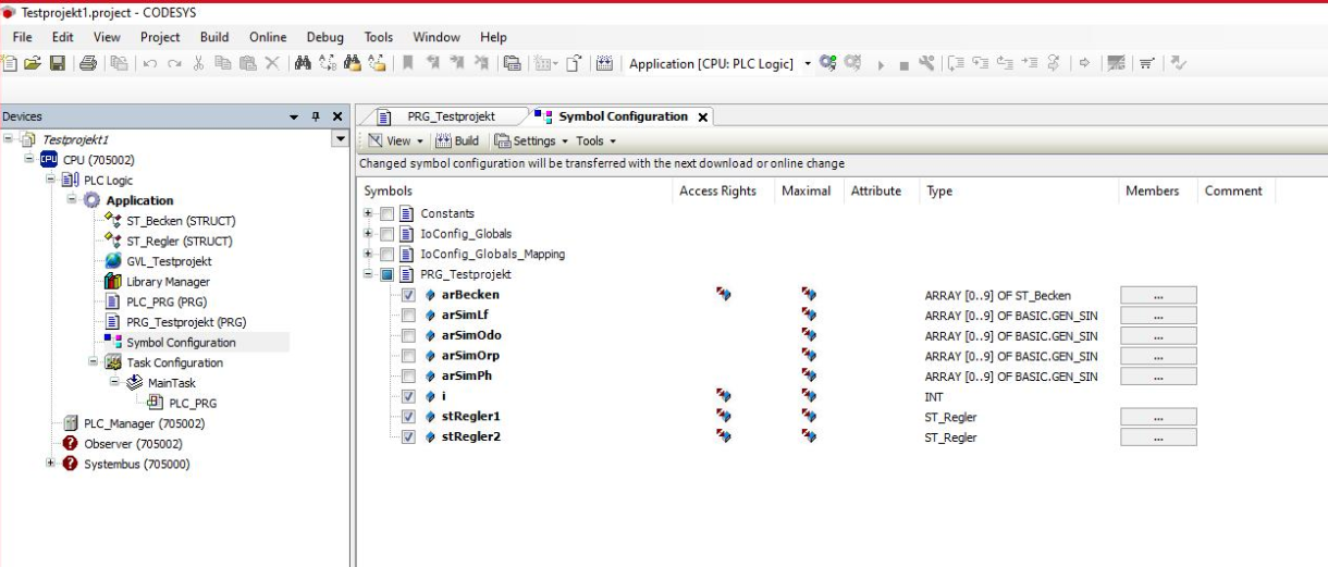 Über das JUMO Setup können in der Codesys Erweiterung bei der “Symbol Configuration” die gewünschten OPC UA Werte freigegeben werden: