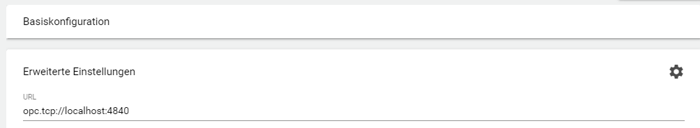 Über “Erweitere Einstellungen” die URL-Adresse “opc.tcp://localhost:4840” angeben und über das Diskettensymbol speichern. Mit dieser URL-Adresse wird der OPC UA Server angesprochen. In obigem Fall wird der JUMO variTRON interne (localhost) OPC UA Server der Codesys angesprochen. Prinzipiell kann jedoch auch eine weitere, andere Verbindung zu einem anderen OPC UA Server im Netzwerk aufgebaut werden.
