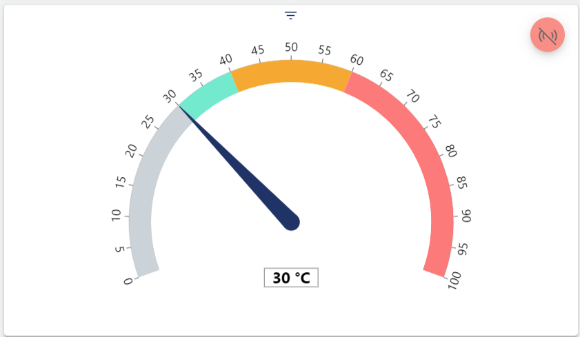4.) Das Widget: Messinstrument wurde überarbeitet. Nun wird die in der Signalkonfiguration eingestellte Einheit (hier °C) direkt übernommen und dargestellt. Dies gilt auch für den konfigurierten Min. Max.-Wert (hier 0 bis 100).