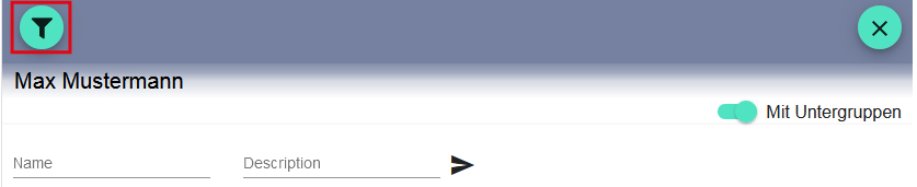 Über das “Filter”-Symbol kann man einen Signalnamen oder eine Beschreibung als Suchbegriff eingeben. Durch das Setzen des Haken “Mit Untergruppen” werden alle weiteren Untergruppen angezeigt.