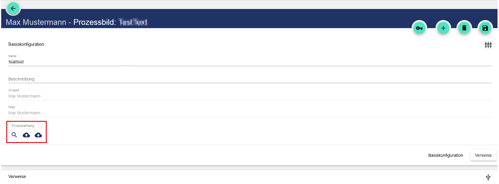 Nach dem Speichern über das “Disketten”-Symbol erscheint das Feld “Prozessanhang”.